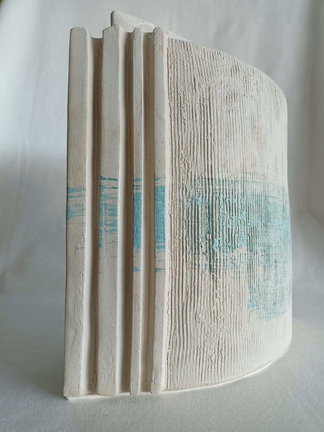 Mit Ton habe ich für mich einen plastischen Werkstoff gefunden, um mich künstlerisch dreidimensional auszudrücken. Meine Kleinskulpturen werden in den meisten Fällen in Plattentechnik gearbeitet, zum Teil streng linear architektonisch anmutend. Sie können dabei durchaus kritisch-soziopolitische Bezüge haben.